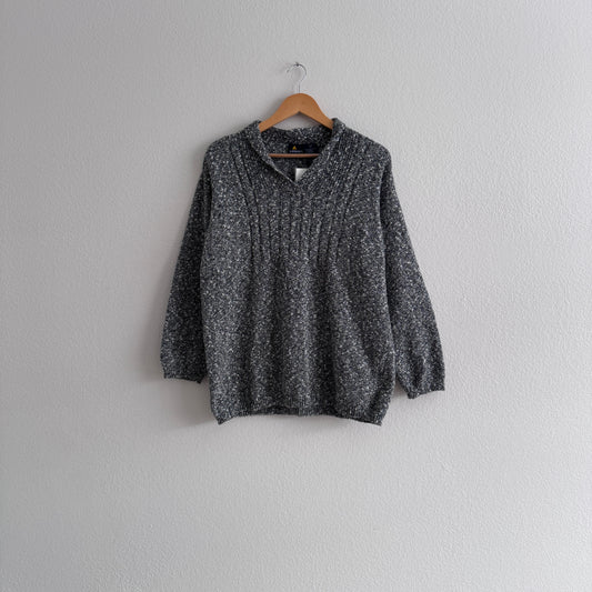 Vintage Heathered Grey Notch Neck Sweater (PL)