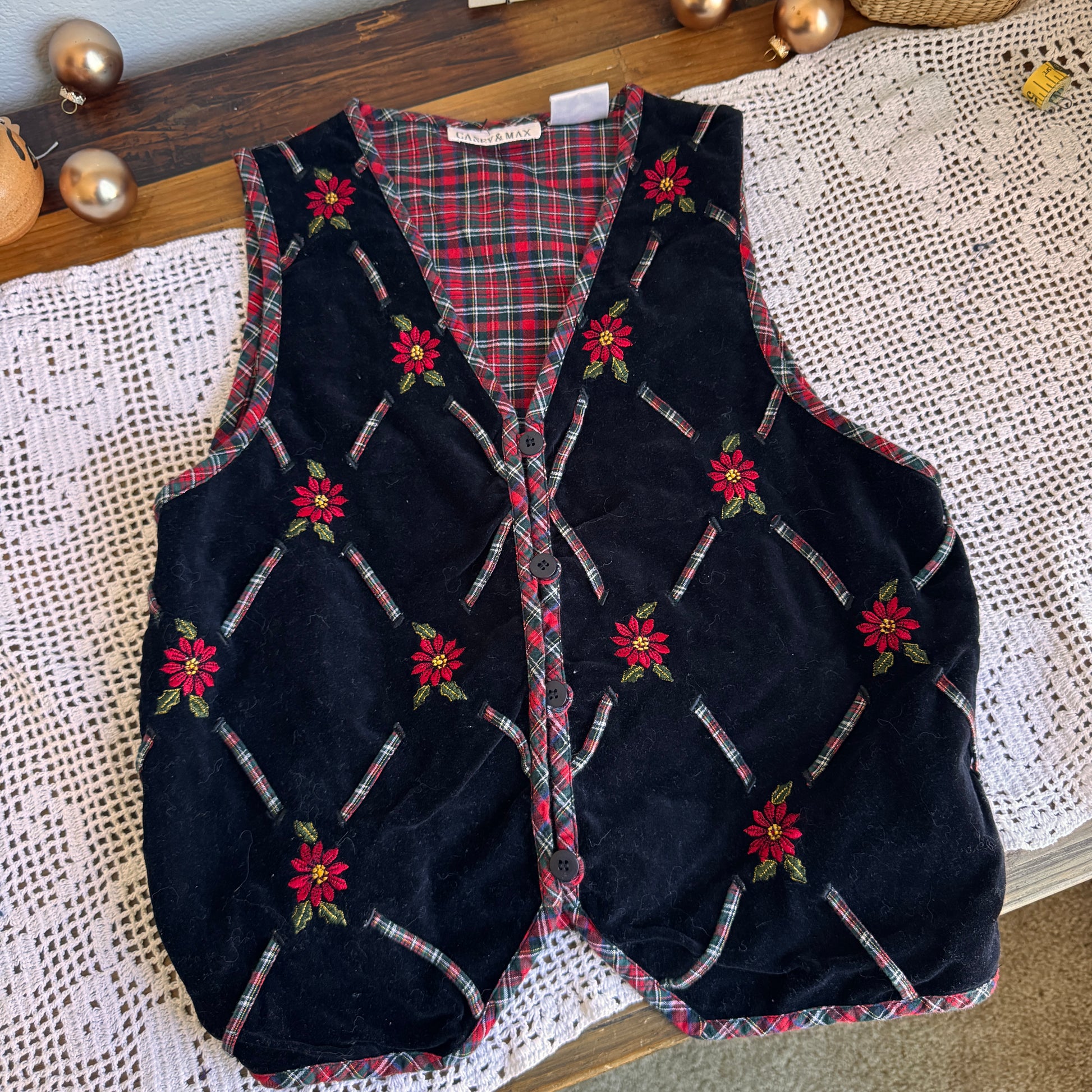 Vintage Velour and Plaid Vest (M)